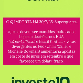 O Q IMPORTA HJ 30/7/25: Superquarta e #INTB3 #SANB11 #COCE5 #BRAV3 #PETR4 #MOTV3 #BBAS3